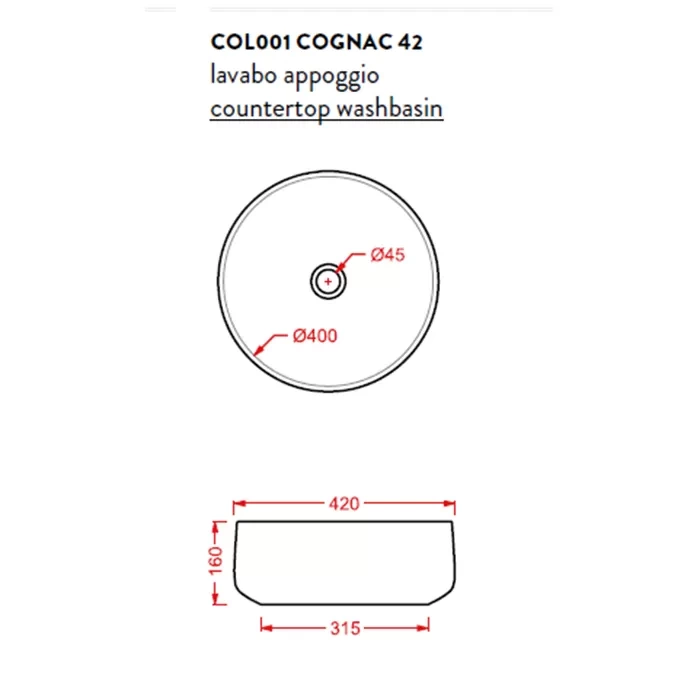 Накладная раковина ArtCeram COGNAC 42 см без отверстий: надежное решение для вашей ванной