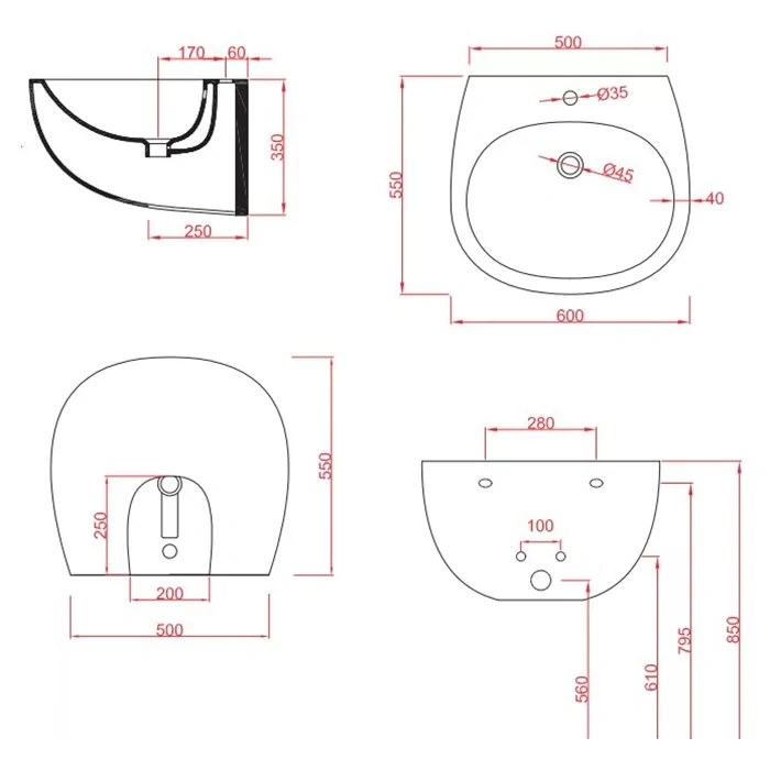 | Комплектация | Чаша, крепления, слив-перелив, сифон |