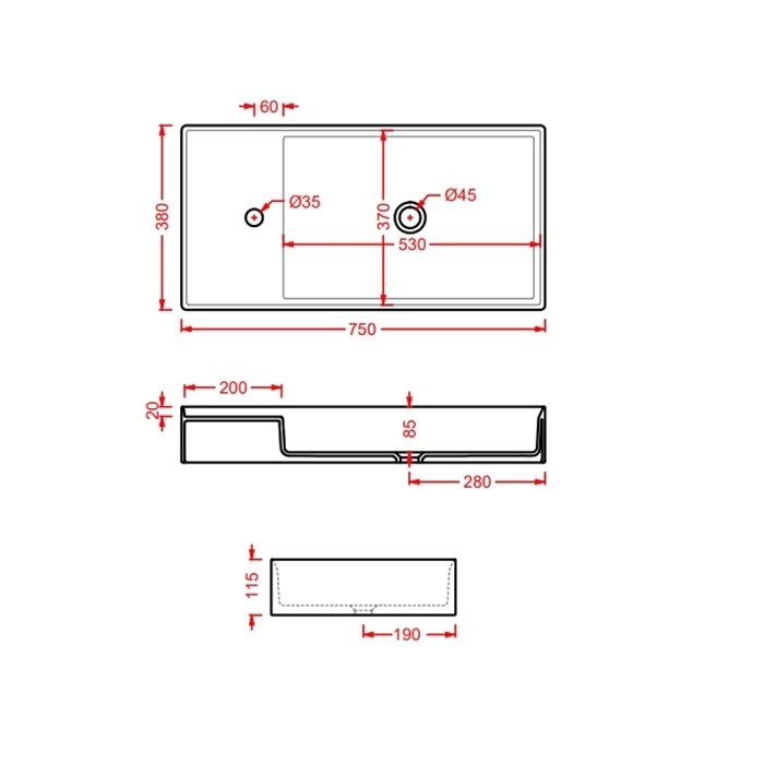 - Конфигурация: Чаша без предустановленных отверстий под смеситель.
