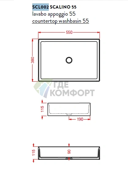 Накладная раковина SCALINO предназначена для монтажа на готовую столешницу или тумбу. Компактный размер 38х55 см оптимален для небольших помещений. Отсутствие отверстия под смеситель (раковина без отверстия) предоставляет свободу выбора места установки крана, позволяя создать индивидуальную конфигурацию.