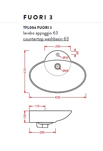 Удачное сочетание компактных размеров, продуманной эргономики и надежности делает накладную раковину FUORI 3 практичным решением для городских квартир, загородных домов и отелей. Она завершит образ вашей ванной комнаты, добавив ей аккуратности и завершенности.