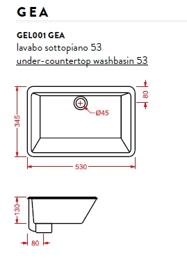 Встраиваемая раковина Artceram GEA 53x34.5 см: монтаж в столешницу