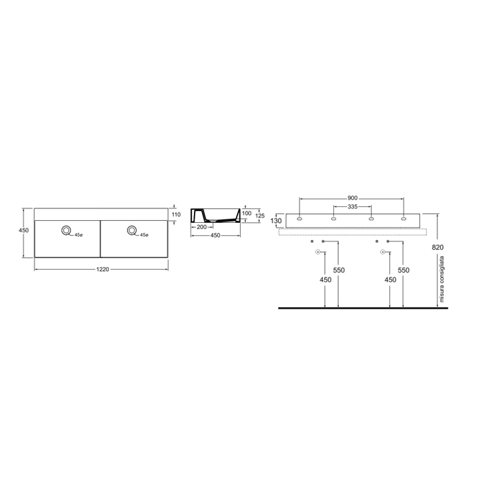 Перед покупкой точно измерьте пространство в ванной комнате. Габаритная длина раковины 122 см требует не только соответствующей ширины тумбы или свободной ниши, но и дополнительных 5-10 см с каждой стороны для комфортного подхода и будущего обслуживания. Убедитесь, что у вас есть этот запас.