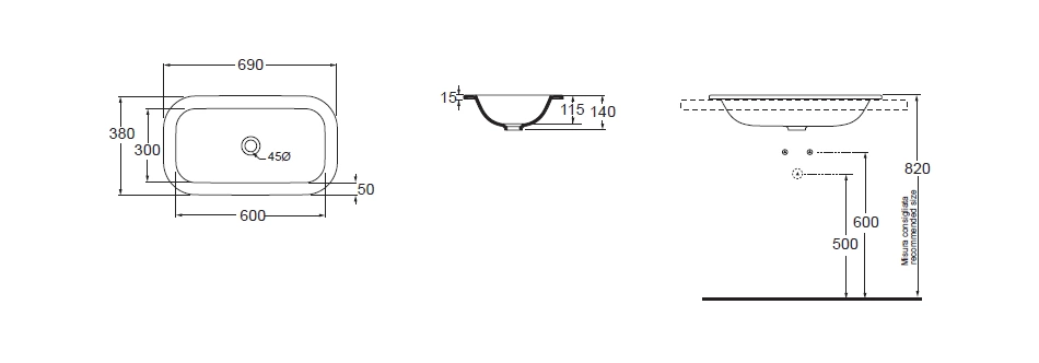 Обратите внимание на размер 69x38 см - это оптимальная глубина для комфортного умывания и мытья головы, при этом модель не перегружает пространство. Перед заказом тщательно проверьте внутренние габариты вашей будущей столешницы или тумбы: для корректной установки нужен запас по длине и ширине, согласно инструкции производителя мебели.