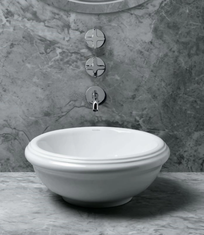 Раковина из серии Jubilaeum от AZZURRA - это элегантное решение для современной ванной комнаты. Классическая круглая чаша диаметром 45 см и глубиной 18 см органично впишется как в компактный санузел, так и в просторный интерьер. Модель поставляется без предварительных отверстий, что дает полную свободу в выборе и установке смесителя.