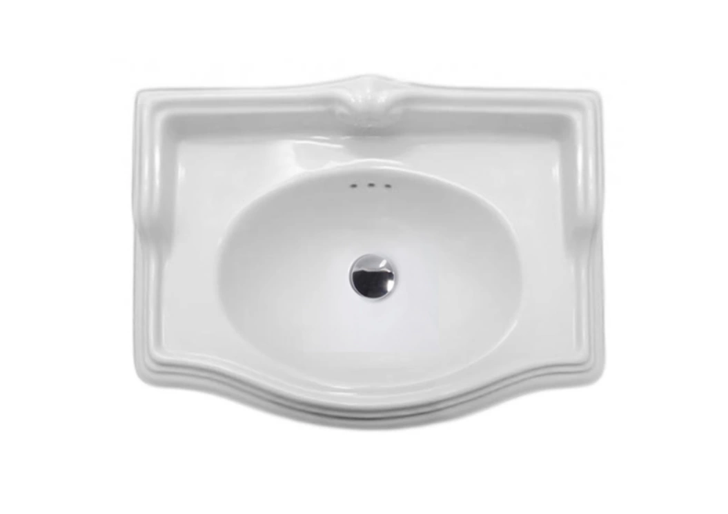 Накладная фаянсовая раковина для ванной комнаты классического дизайна. Модель предназначена для монтажа на тумбу или столешницу и создает аккуратный законченный вид санузла. Отсутствие отверстия под смеситель обеспечивает гибкость в выборе места установки крана - на саму раковину, стену или столешницу.