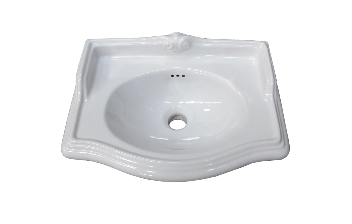 Раковина AZZURRA JUBILAEUM предназначена для накладного (Top-mount) монтажа. Она устанавливается сверху на подготовленное отверстие в столешнице. Декоративная высокая спинка служит функциональным экраном и элементом дизайна, скрывая пространство у стены.