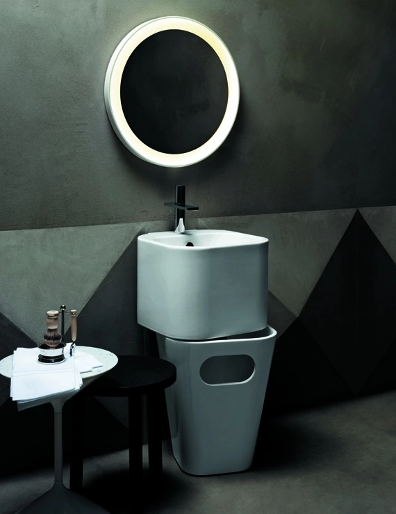 Обратите внимание на коммуникации. Прелесть подвесной раковины в том, что все трубы и сифон скрыты. Но это требует от вас точного и заблаговременного планирования. Высоту выпуска канализации и подводки воды необходимо рассчитать до миллиметра, ориентируясь на выбранную модель и высоту ее установки. Заранее решите, будет ли корзина для белья мешать подключению сифона.