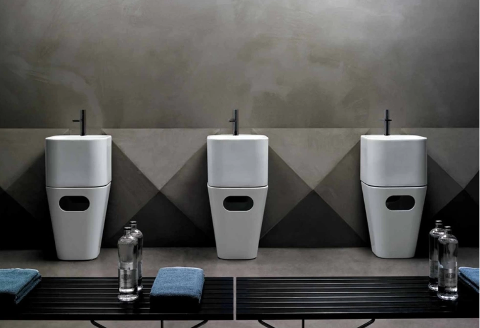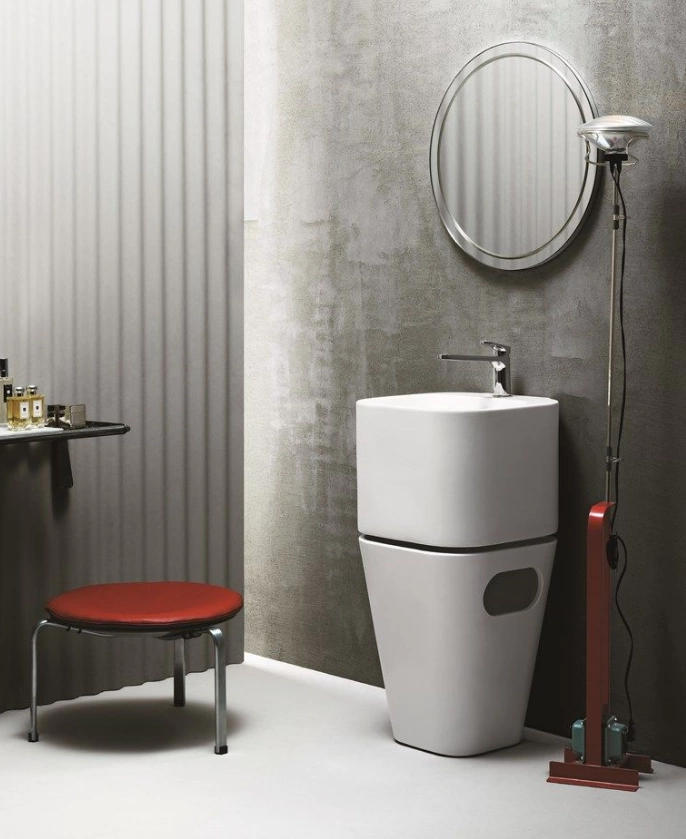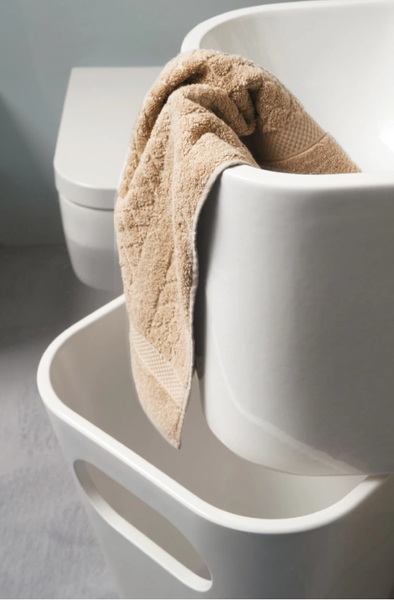 Как и все подвесные раковины, AZZURRA TANDEM требует скрытого монтажа на инсталляцию или прочное основание. Это освобождает пол, облегчая уборку, и позволяет точно регулировать высоту установки. Все подводы и сифон скрыты, что усиливает визуальную легкость конструкции.