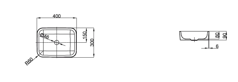 Накладная раковина BETTEART 30x40 см без отверстий в белом цвете A180-000