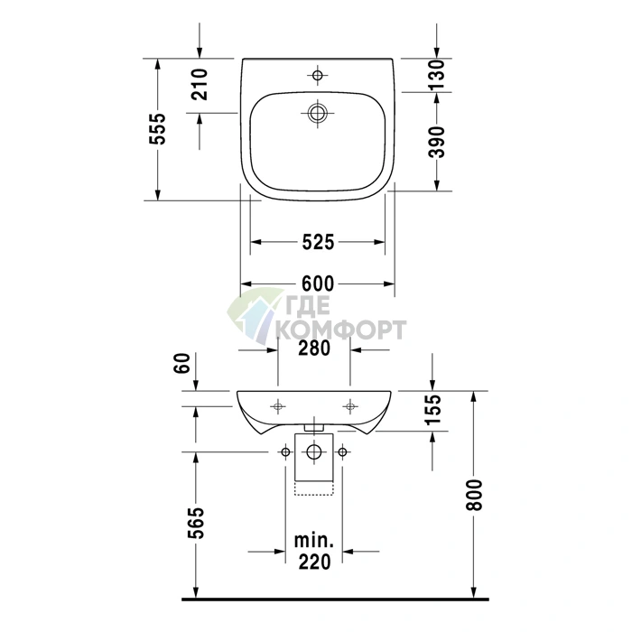 Размер 600x550 мм - это золотая середина. Раковина достаточно вместительна для обработки инструментов или мытья рук, но при этом не займет лишнего места в сантехническом шкафу или нише. Перед заказом обязательно проверьте габариты готовой мебели или тумбы, куда планируется установка, с учетом всех подводок.