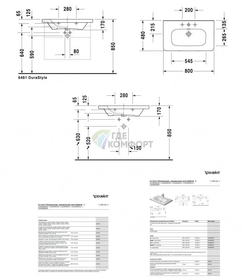 Ключевые характеристики раковины DuraStyle 800x480