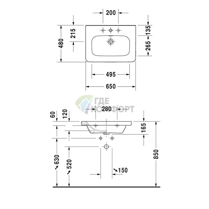 Перед заказом мебели под эту раковину тщательно проверьте её точные габариты 650x480 мм. Учитывайте не только внешний размер чаши, но и конструкцию тумбы - должен быть обеспечен надёжный упор по всему периметру борта. Частая ошибка - заказ мебели «впритык» по ширине, что приводит к сложностям при монтаже и риску перекоса.