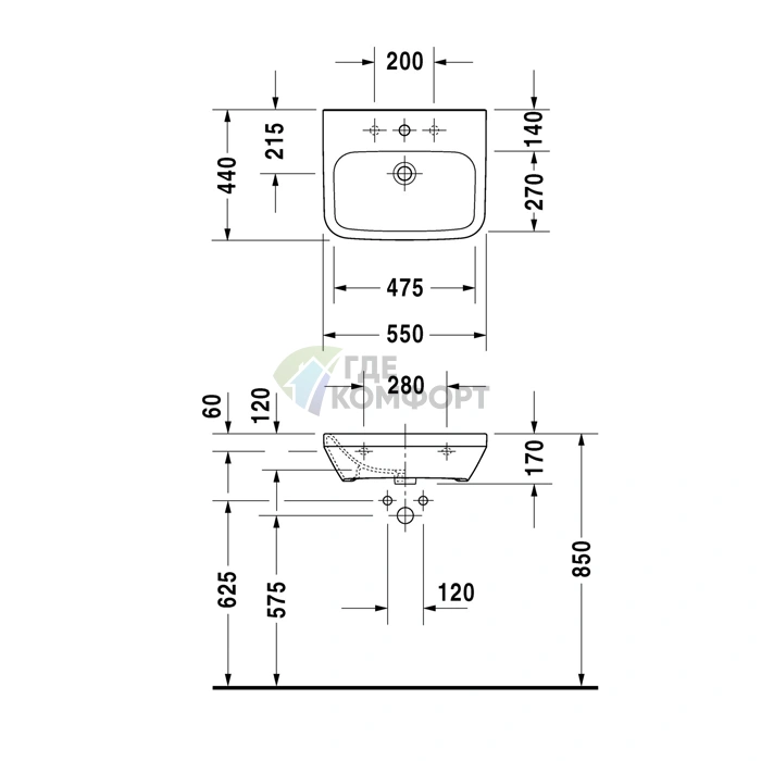 Каковы точные размеры раковины DuraStyle 550x440 мм?