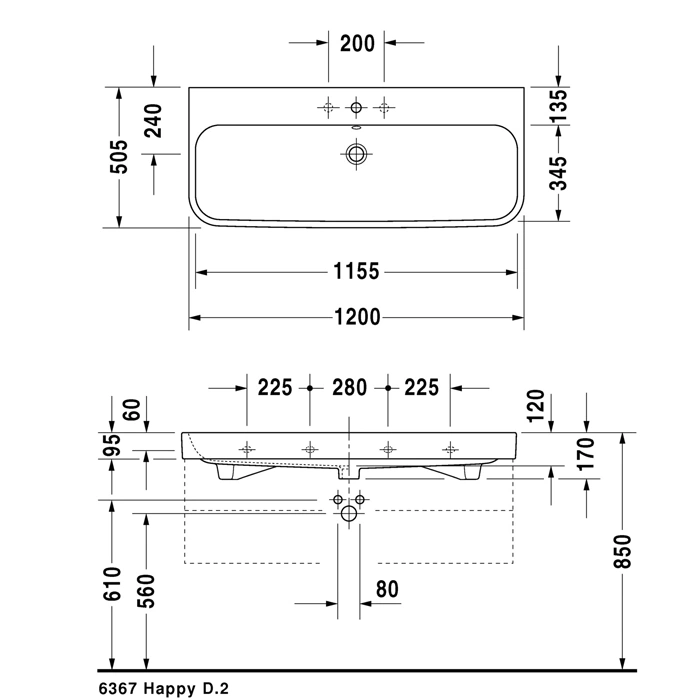 Раковина Duravit Happy D2 имеет размер 1200x505 мм и предназначена для интеграции в столешницу мебели серии Happy D.2 или другие шкафы-тумбы соответствующего типоразмера. Она является врезной (подстольной) моделью, что обеспечивает элегантный и современный вид.