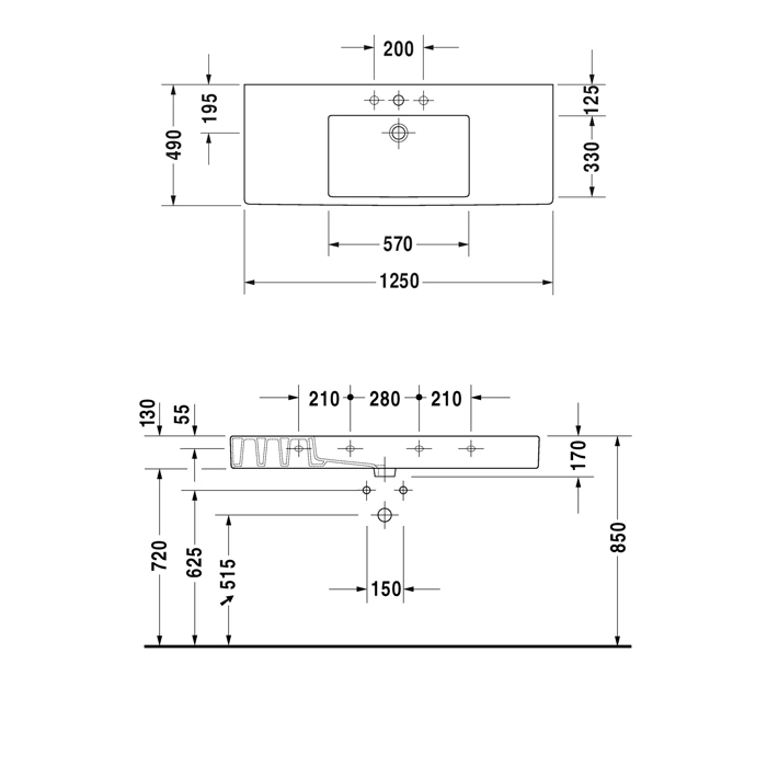 Раковина Duravit Vero 1250x490 мм предназначена для встраивания в столешницу мебели (монтаж типа «подстольная» или «countertop basin»). Она утапливается в подготовленный вырез в столешнице, а ее верхний край фиксируется с помощью специального крепежного комплекта.
