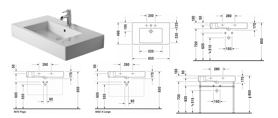 Размеры 850x490 мм обеспечивают максимальный комфорт при ежедневном использовании. Продуманная конструкция включает систему перелива для предотвращения затопления и одно отверстие для установки смесителя.