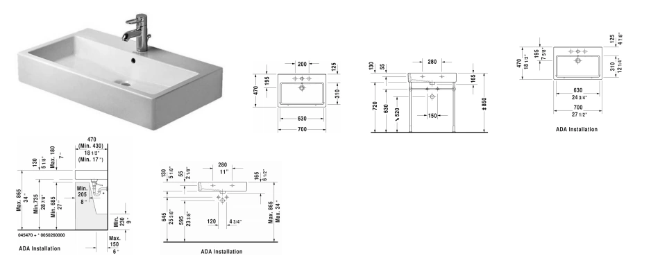 Вопросы и ответы об умывальнике Duravit Vero 700 мм без перелива