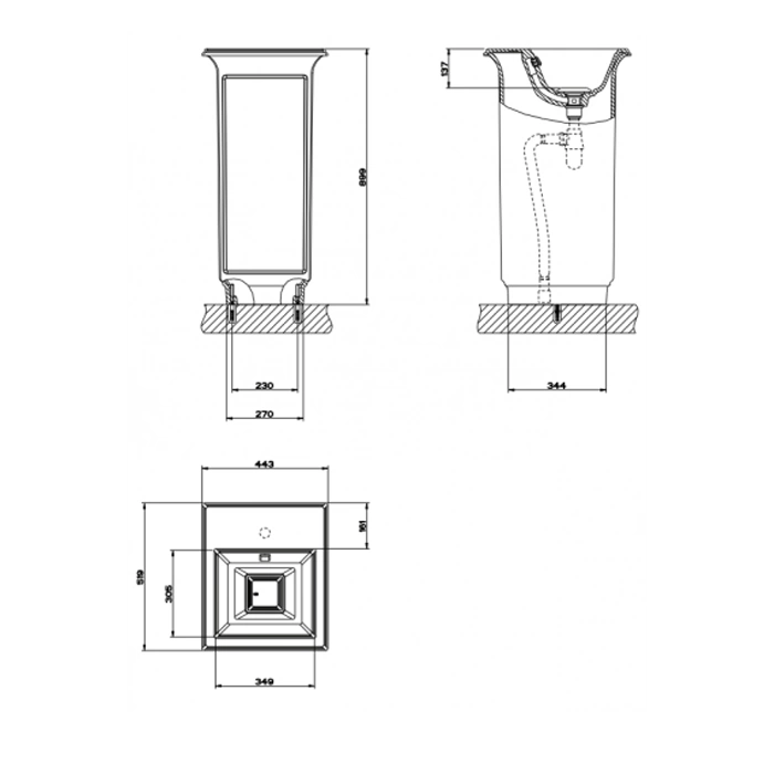 Напольная раковина Gessi Eleganza изготовлена из высококачественного санфаянса или санфарфора с прочным матовым покрытием белого цвета, которое обеспечивает стойкость к загрязнениям и придает современный внешний вид.