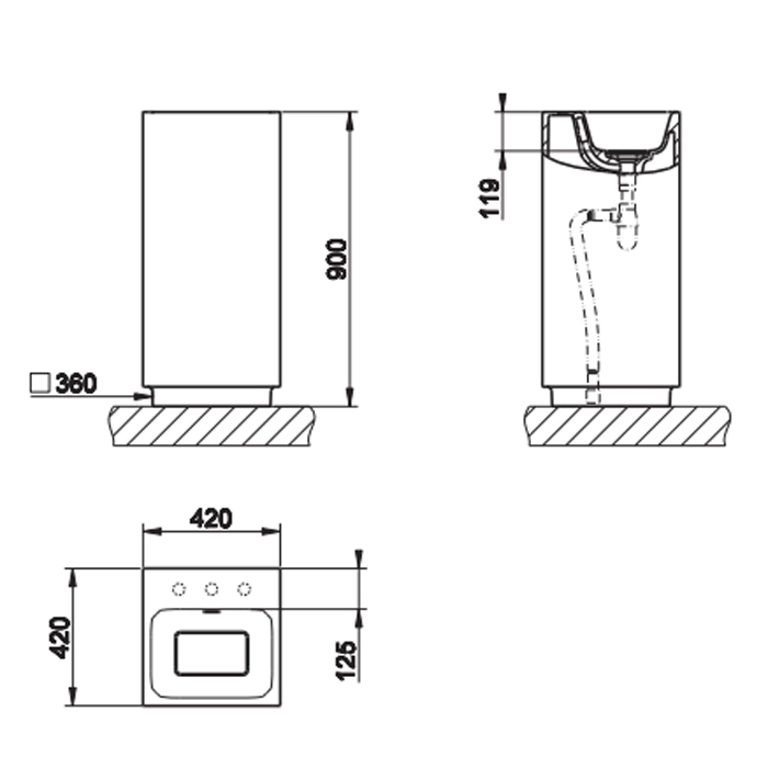 Монтаж требует профессиональной подготовки. Необходимы точное позиционирование и крепление пьедестала к полу, подключение сифона к канализационному отводу в полу, установка смесителя в отверстия на пьедестале и герметичное подключение к водопроводу. Рекомендуем доверить установку квалифицированному сантехнику.