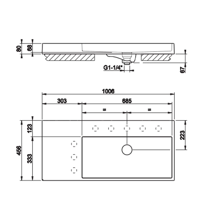 Точные размеры модели: 100.6 см в длину, 45.6 см в глубину. Это крупная прямоугольная раковина, обеспечивающая просторную чашу. Перед покупкой замерьте выделенное под раковину пространство на стене, учитывая, что для подвесных моделей также важно расстояние до коммуникаций и удобная высота монтажа (обычно 80-90 см от пола).