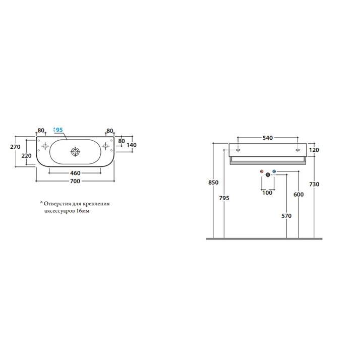- Комплектация: Раковина, крепление, слив-перелив (артикул уточняйте)