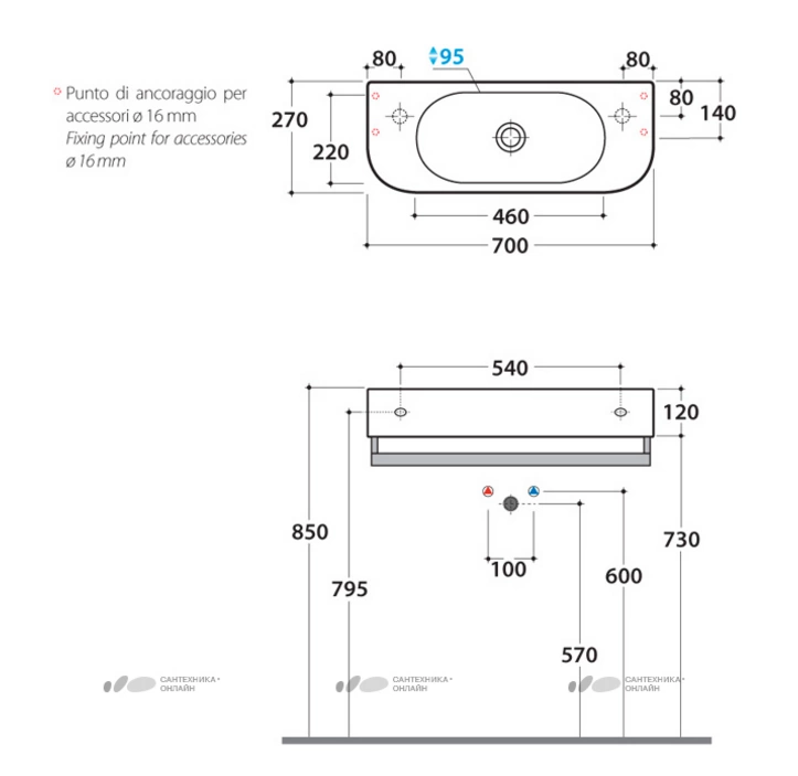 Широкий сливной перелив защитит от переполнения чаши водой, а стандартное посадочное место под смеситель позволяет установить большинство современных моделей. Монтажный комплект входит в поставку для удобства установки.