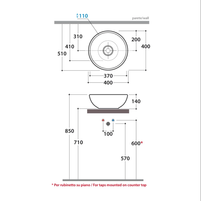 Выберите накладную раковину GLOBO Lavabi 40 см белого цвета без отверстия — получите практичную сантехнику для быстрого обновления интерьера.