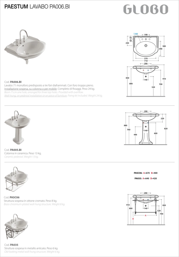 Вопросы и ответы о подвесной раковине GLOBO Paestum 71x58 см