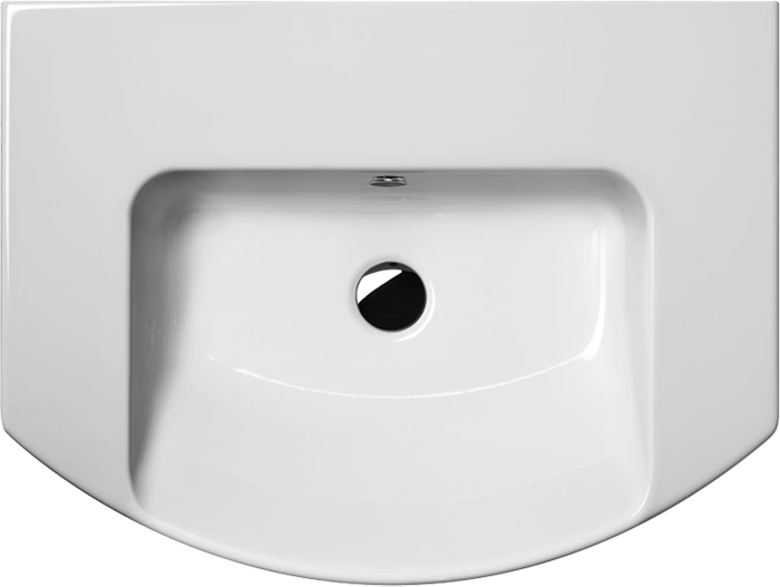 - Упрощенный монтаж: одно стандартное отверстие под смеситель дает свободу выбора модели крана и упрощает процесс установки. Раковина совместима с большинством подвесных тумб и пьедесталов.
