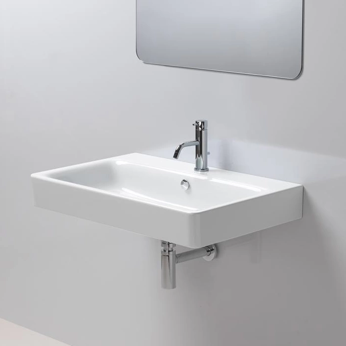 Наличие перелива (защита от переполнения раковины) и одного стандартного отверстия под смеситель означает, что модель готова к подключению. Вам останется выбрать и установить смеситель (настенный или на раковину), а также подключить переливной шланг к сифону.