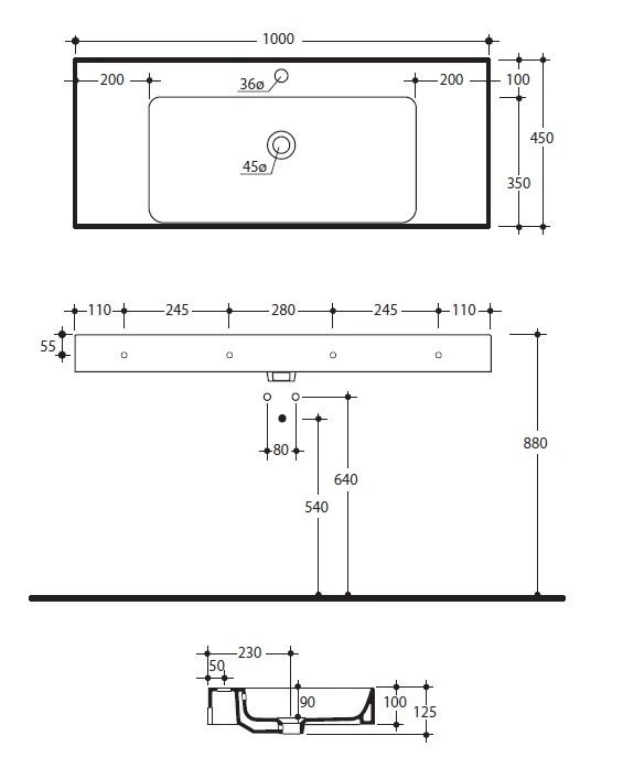 Габаритные размеры этой кухонной мойки - 100 см в длину, 45 см в ширину. Глубина полезной чаши составляет около 19-20 см, что оптимально для мытья крупной посуды и предотвращает разбрызгивание воды.