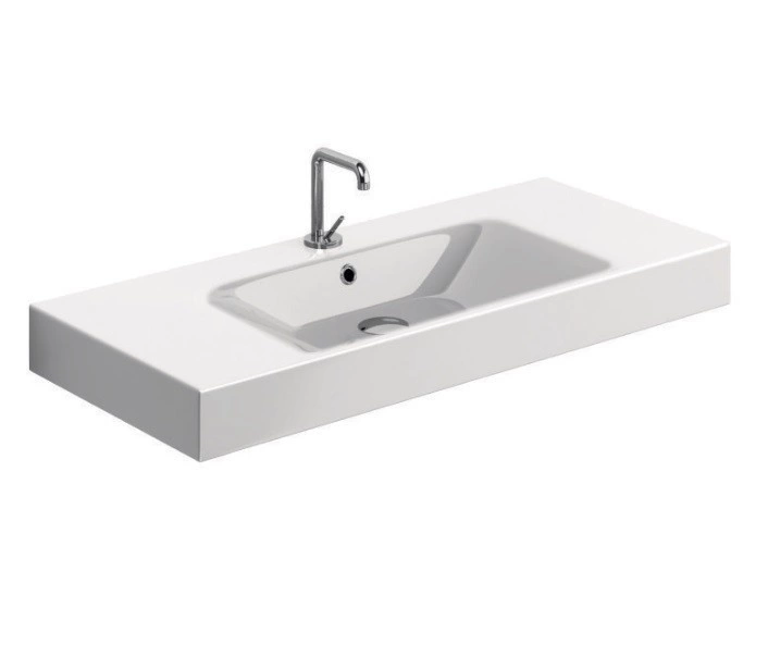 Кухонная мойка KERASAN Cento 100x45 с отверстием под смеситель, белая (355001*1)