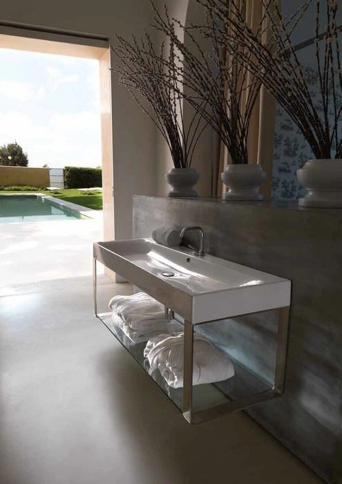 - Ценители стиля в санузле: Для тех, кто создает дизайнерский интерьер ванной комнаты. Хромированные опоры и стеклянная полка добавят ощущения простора, света и дорогой эстетики.