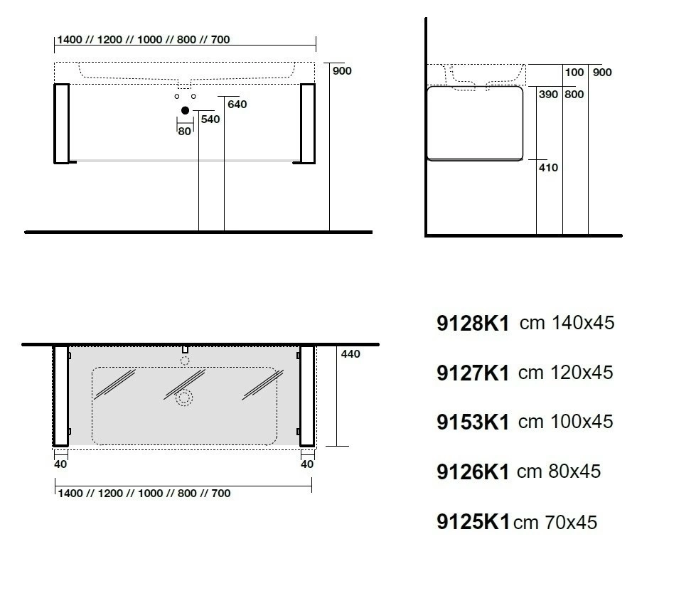 Габаритные размеры полки составляют 120 см в длину, 45 см в глубину. Точная высота конструкции зависит от способа монтажа. Модель имеет классическое хромированное покрытие металлических частей и прозрачное закаленное стекло. Такой дизайн универсален и подходит для большинства современных ванных комнат.