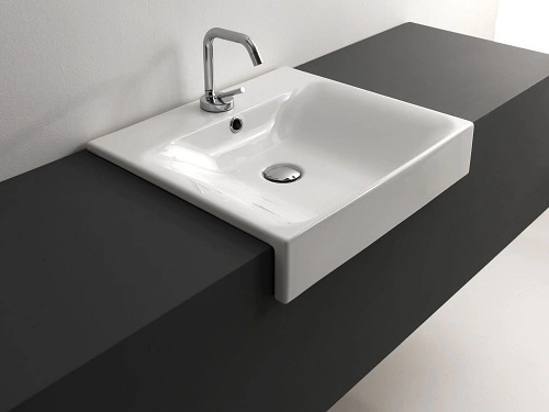 Раковина KERASAN Cento 50x45 полувстраиваемая белая с 1 отверстием под смеситель (3546bi*1)
