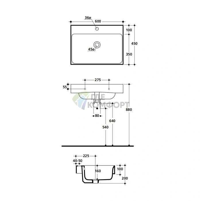 Геометрия и размеры (60x45 см).