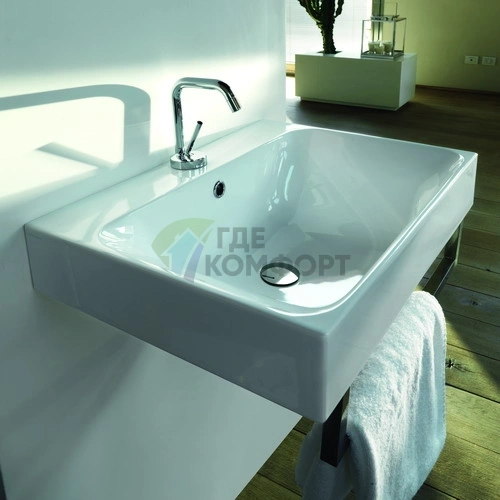 Раковина Kerasan Cento - универсальное решение. Ее классическая прямоугольная форма и белый цвет подойдут для любого стиля: от современного минимализма до традиционной классики. Она идеально сочетается с готовыми тумбами шириной 60 см, на которую накладывается. Модель особенно рекомендуется для небольших ванных комнат, где важно сэкономить пространство за счет подвесного монтажа. Посмотрите фото этой модели в интерьерах в нашей галерее, чтобы оценить ее в деле.