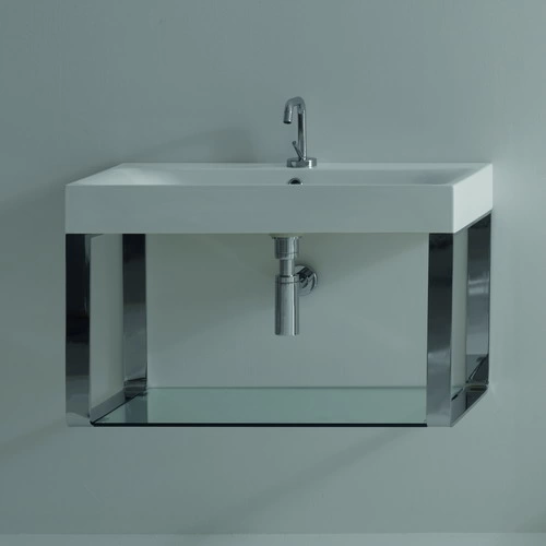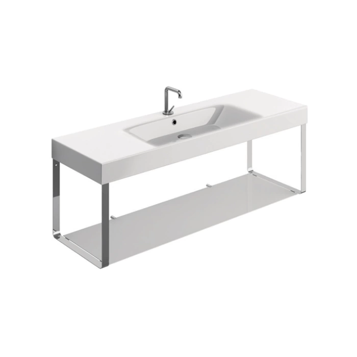 Модель KERASAN Cento представляет собой продуманную систему хранения с элегантной хромированной стойкой. Стеклянная полка размером 140x45 см обеспечивает достаточно пространства для размещения косметики, банных принадлежностей и декоративных элементов.