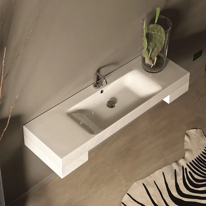 - Владельцам компактных или совмещенных санузлов. Свободное пространство под раковиной визуально увеличивает помещение, а его легко мыть. Габариты 140x45 см - это оптимальный баланс между полезной площадью и экономией места.
