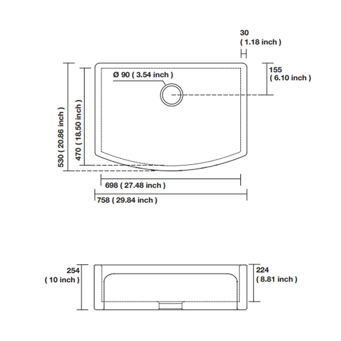 - Типоразмер: 600×530×220 мм (длина/ширина/глубина чаши).