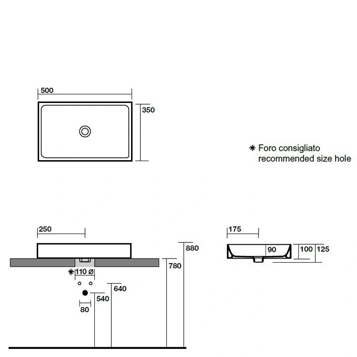 Модель предназначена для накладного (Top-mount) монтажа на столешницу или тумбу. Благодаря отсутствию отверстия под смеситель вы можете установить смеситель отдельно на столешницу или стену, что дает большую свободу в дизайне.