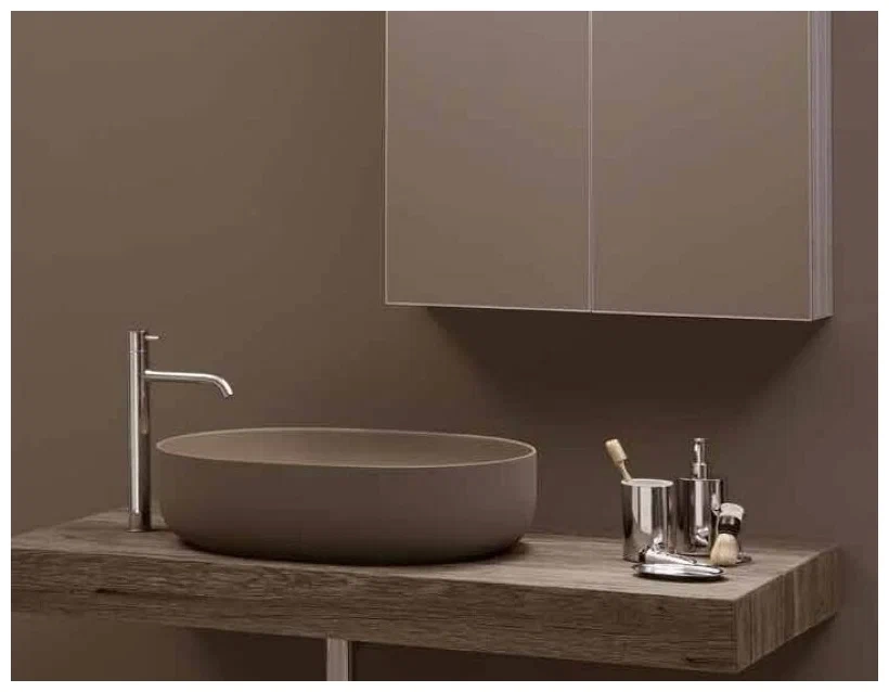 - Дизайнерам и тем, кто любит нестандартные решения. Теплый и глубокий цвет «коричневый орех» - это смелый акцент. Раковина может стать цветовой доминантой в нейтральном интерьере или гармонично дополнить деревянные, медные аксессуары.