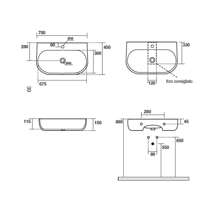 Ключевые характеристики раковины Nolita 70x45