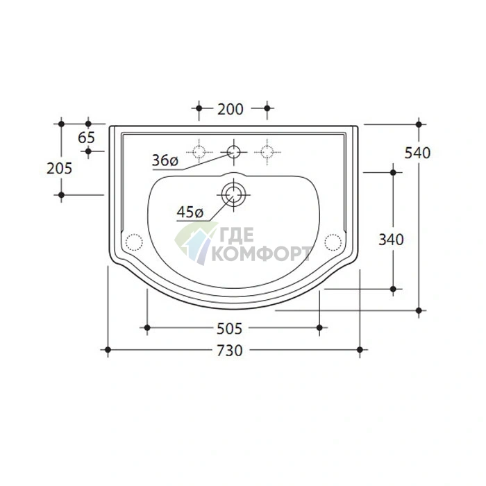 Габаритные размеры модели - 73 см (ширина) x 54 см (глубина). Это компактное решение для небольших помещений. Перед покупкой обязательно замерьте свободное пространство в ванной, учитывая, что для комфортного использования перед раковиной должно оставаться не менее 70-80 см. Учитывайте также высоту колонны для скрытия подводки. Нужна помощь с расчетами? Наши консультанты готовы помочь по телефону.
