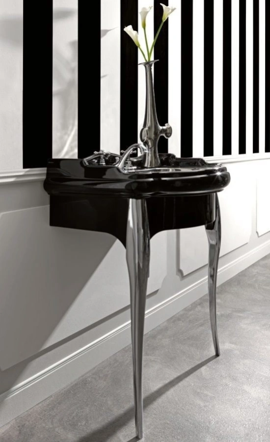 - Ценителям классики и винтажа. Если вы создаете ванную комнату в стиле ар-деко, викторианском или классическом, эта раковина станет ее сердцем. Черный глянец - это смелое и элегантное заявление.