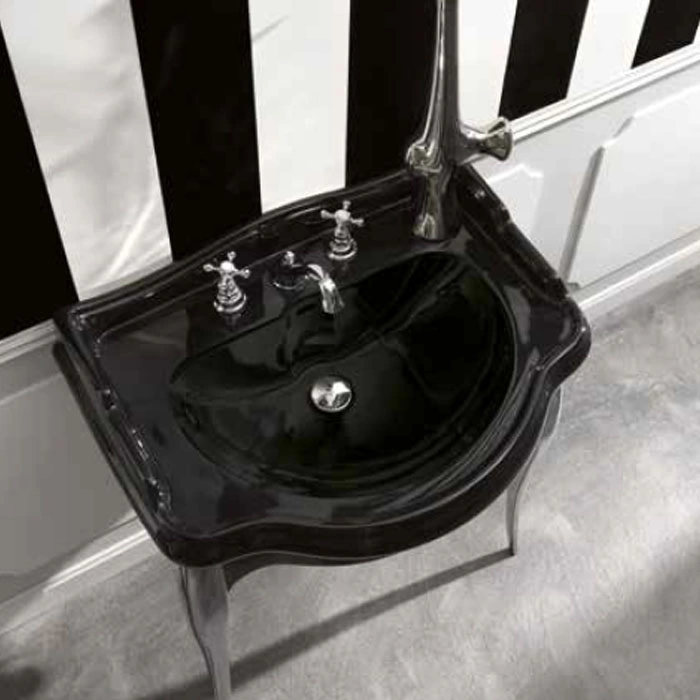 Вопросы и ответы о раковине KERASAN Retro 73 73x54 см: черная глянцевая с одним отверстием (104704*1)