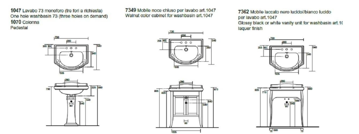 Эту модель можно установить на стену, на столешницу или на специальные керамические ножки или металлическую консоль от Kerasan. Последний вариант - самый аутентичный, он превращает раковину в полноценный предмет мебели.