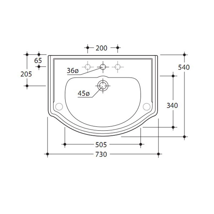 Модель Retro 73 имеет прямоугольную форму с классическими закругленными углами. Ее габаритные размеры: 73 см в длину, 54 см в ширину. Эти параметры важно учитывать для выбора подходящей тумбы или столешницы.