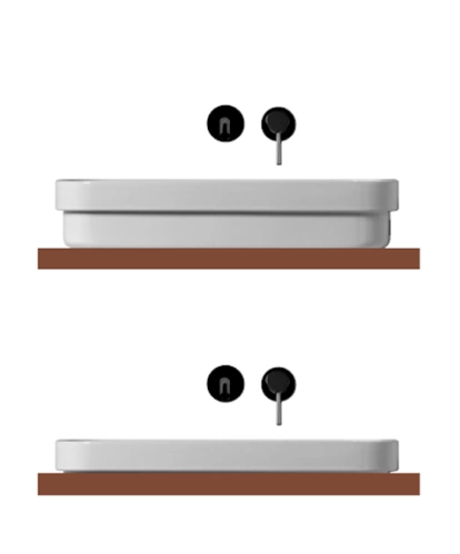 Установка довольно проста. В столешнице вырезается отверстие по прилагаемому шаблону. Раковина Kerasan Tribeca помещается сверху так, чтобы ее бортик лег на столешницу, а чаша опустилась в вырез. Фиксация происходит с помощью крепежных клипс (приобретаются отдельно) и силиконового герметика для гидроизоляции стыка. Рекомендуем доверить монтаж профессионалу для гарантии идеального результата.